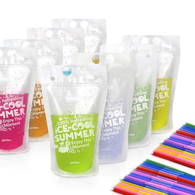 Worth every penny: These are absolutely everything I needed them to be- 100 Drink Pouches Bags with 100 Disposable Plastic Straws which are extra long and flexible.