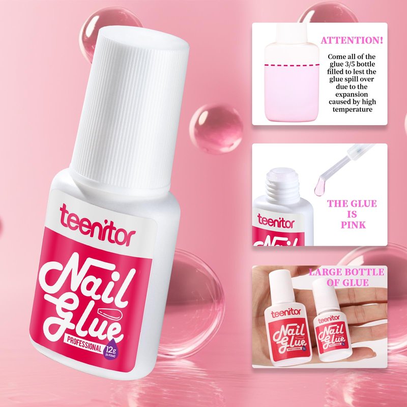 - Nail Glue For Acrylic Nail Tips: Teenitor nail glue is fast-drying, bonds quickly and perfectly for long-lasting use. Dry out in 3 seconds after applying fake nails. It can also be used for applying press-on nail pieces or gems, and repairing broken nails