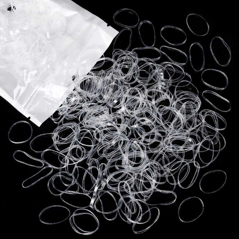 - Package: Incluing 300pcs Clear Hair Elastics. Easy to wrap around fine hair, medium and coarse hair, curly hair, braids and ponytails. please keep them out of the reach of children under 3 years old to avoid choking and swallowing