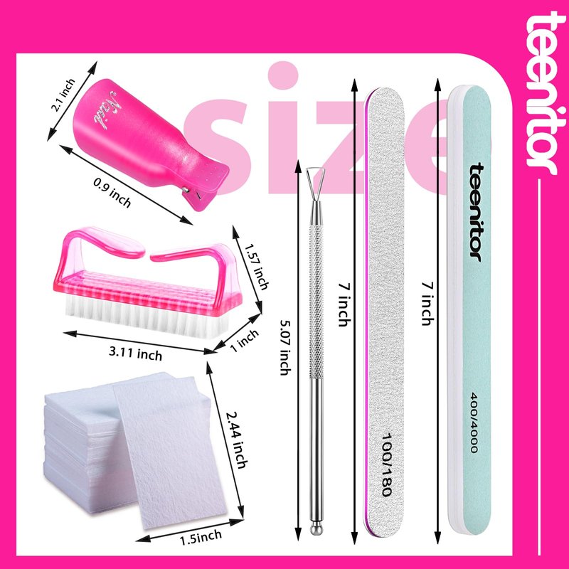 - New At-home gel remover kit come to life: When it comes to gel nails, removal is often the hardest part of all. Need to get your gel polish off and don't have the time or patience to head to the salon? We've been there, these cute tools include everything you need to soak, dissolve, and remove gel polish-coarse sand file, handle grip nail brushes, nail remover pads, nail clips, Cuticle Pusher& buffer block
