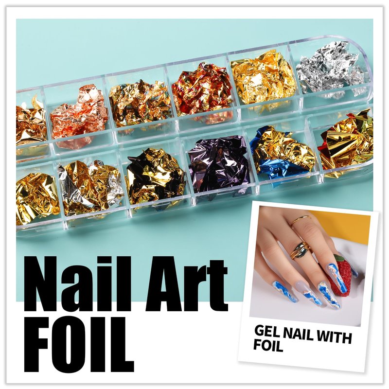 - 2mm Colorful Nail Rhinestones & 12 Colors of Nail Art Foil - As the most popular nail art decoration gems, 2 mm is the best diameter, both nail art rhinestones and nail foil are 12 different colors, always decorate your gel nails and make it looks shine and charming, you also can combine nail rhinestone to create different design