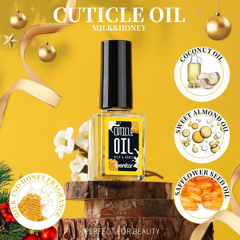 - Milk and Honey Cuticle Oil: Apply cuticle oil before and after soaking nails to protect your hands and moisturize your nails. Natural honey and milk cuticle oil, rich in oils and multivitamins. Can quench dry cuticles, provide protection and deeply soothes and hydrates skin. Cuticle oil protects and nourishes dry, brittle cuticles and nails. leaving your cuticles and nails looking shiny and lustrous