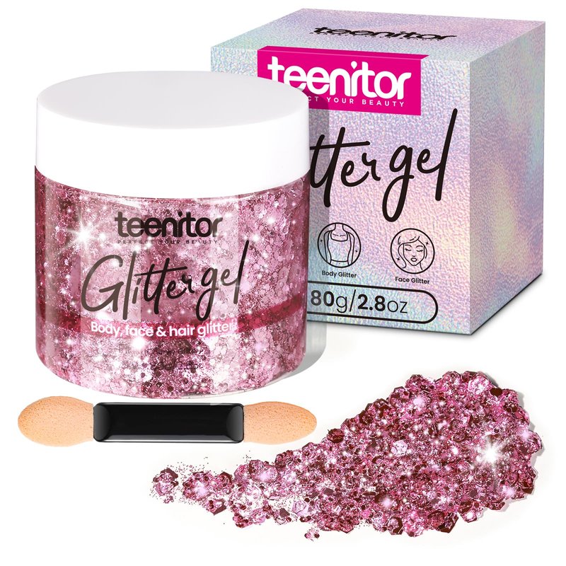 - Sparkly body glitter gel: teenitor pink body glitter gel is easy to apply and dries quickly. high-quality, water-based formula and contains a mix of large chunky glitter pieces, creating a stunning sparkle effect. the gel comes in a generous 2.82 ounce bottle, providing you with plenty of product to create your desired look.