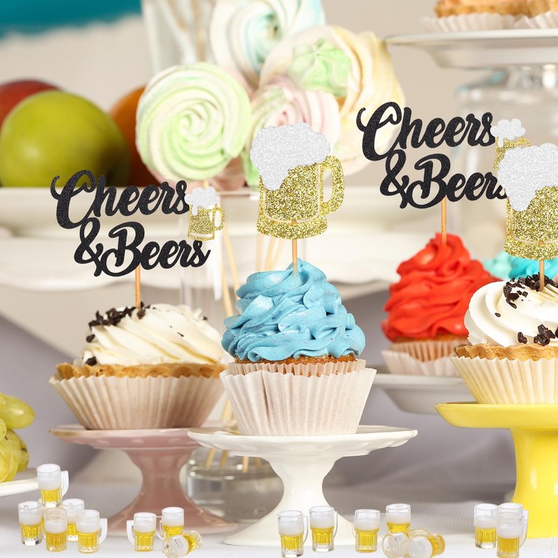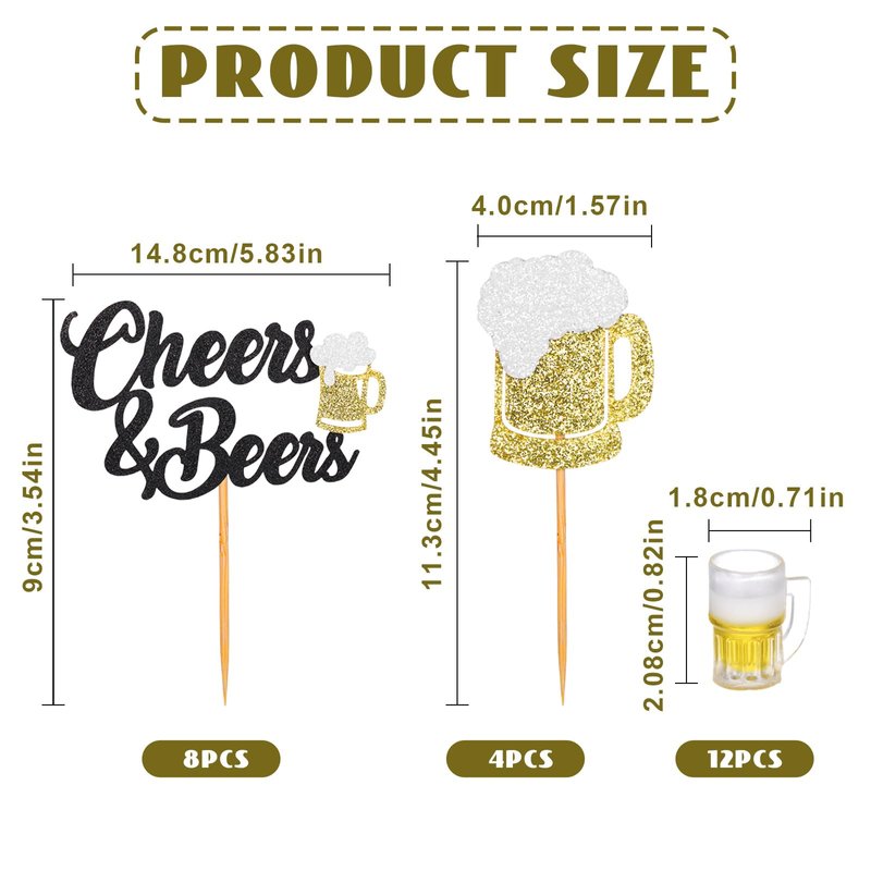 - Package Included: our product set consists of 4 cheers and beers cupcake toppers, 8 gold glitter beers cake topper decorations, and 12 toppers beer cup ornaments; After assembly, you can directly insert it into the cake to make your cake more interesting