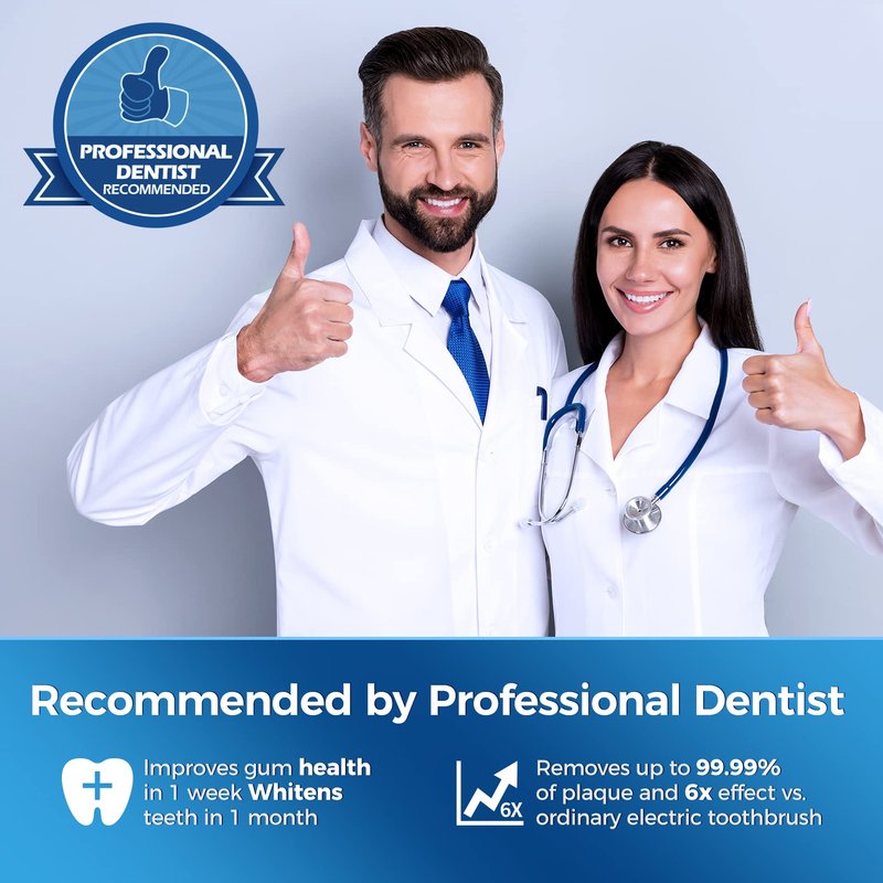 - 【2‐𝙈𝙞𝙣𝙪𝙩𝙚 𝐒𝐦𝐚𝐫𝐭 𝐕𝐢𝐛𝐫𝐚𝐭𝐢𝐧𝐠 𝐓𝐢𝐦𝐞𝐫】Our sonic toothbrush includes a built-in timer that pulses every 30 seconds, ensuring you follow dentist-recommended brushing habits. This timer helps you move on to a new quadrant of your mouth, ensuring a thorough clean. The electric toothbrush for adults automatically powers down after the recommended 2 minutes of brushing