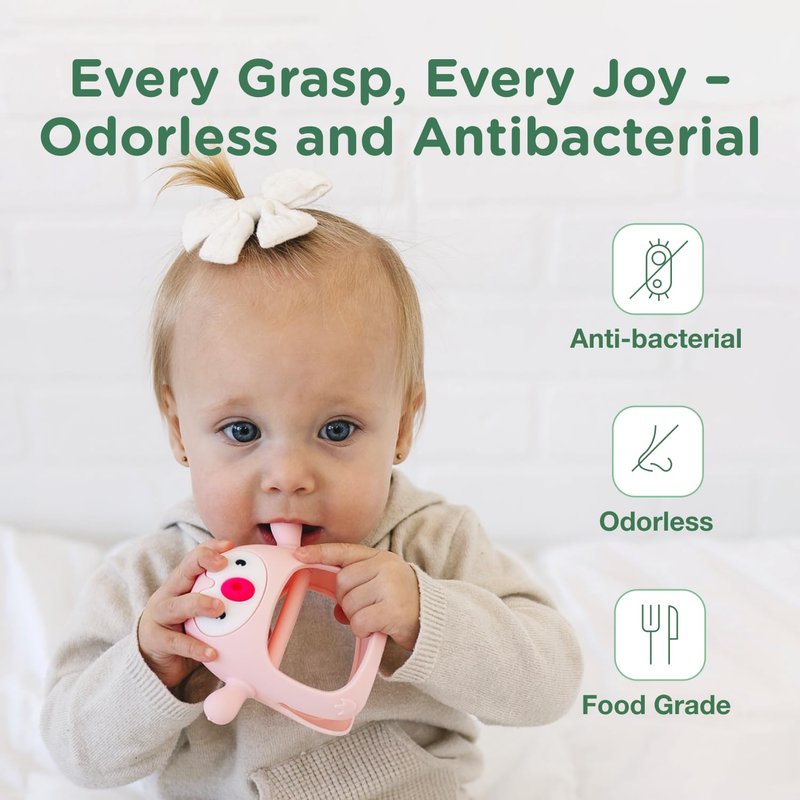 Teething Toy for Infants & Babies, Teethers for Babies 3-6 Months, Baby Teethers 0-6 Months, Teething Toys 6-12 Months, TotCo Never-Drop Baby Teething Toy, Pink