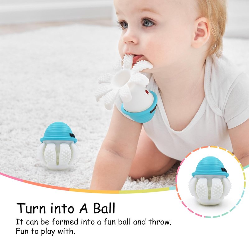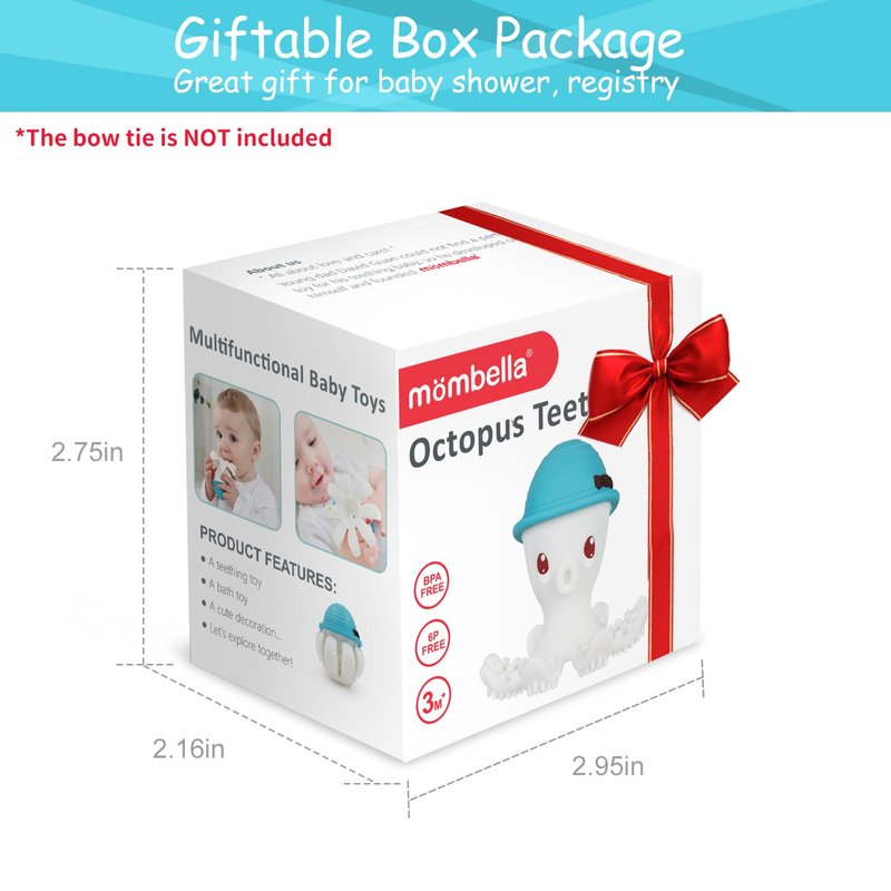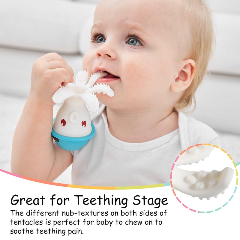 - BABY TEETHER FOR 6 M+ INFANTS -Two different textured surfaces on tentacles can be a teething aid and toothbrush for fussy and teething babies. Leave it in freezer after filling with water, frozen teether helps message gums and let baby calm down.