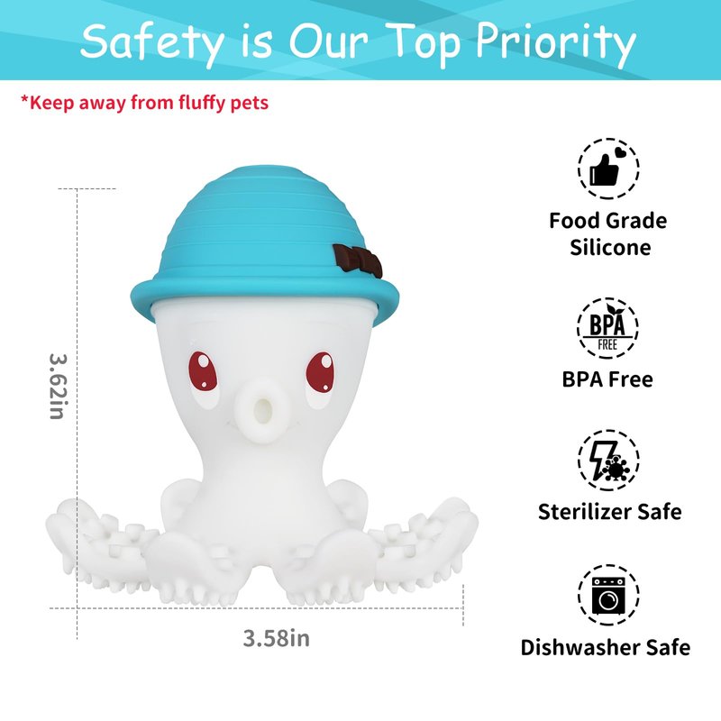 Octopus Series Teether of Blue. Not Only A Teether But Also A Baby Toy!