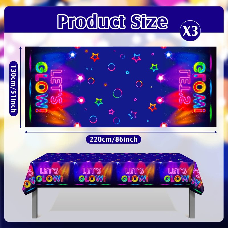 Tegeme 3 Pieces Glow Tablecloth 86 x 51 Inch Glow in The Dark Tablecloth Disposable Tablecloths for Glow Theme Neon Party Black Light Party Supplies
