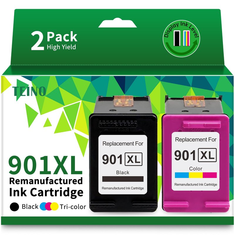 - 901XL Package Contents: 2 pack remanufactured ink cartridges replacement for HP 901 901XL ink cartridges for HP printers (black tri-color, combo pack)