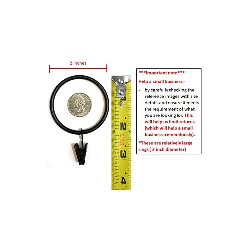 - Curtain Rings - These are relatively large rings ( 2 inch diameter) - Please check the reference image with size details and ensure it meets the requirement of what you are looking for. This will help us limit returns (which will help a small business tremendously )