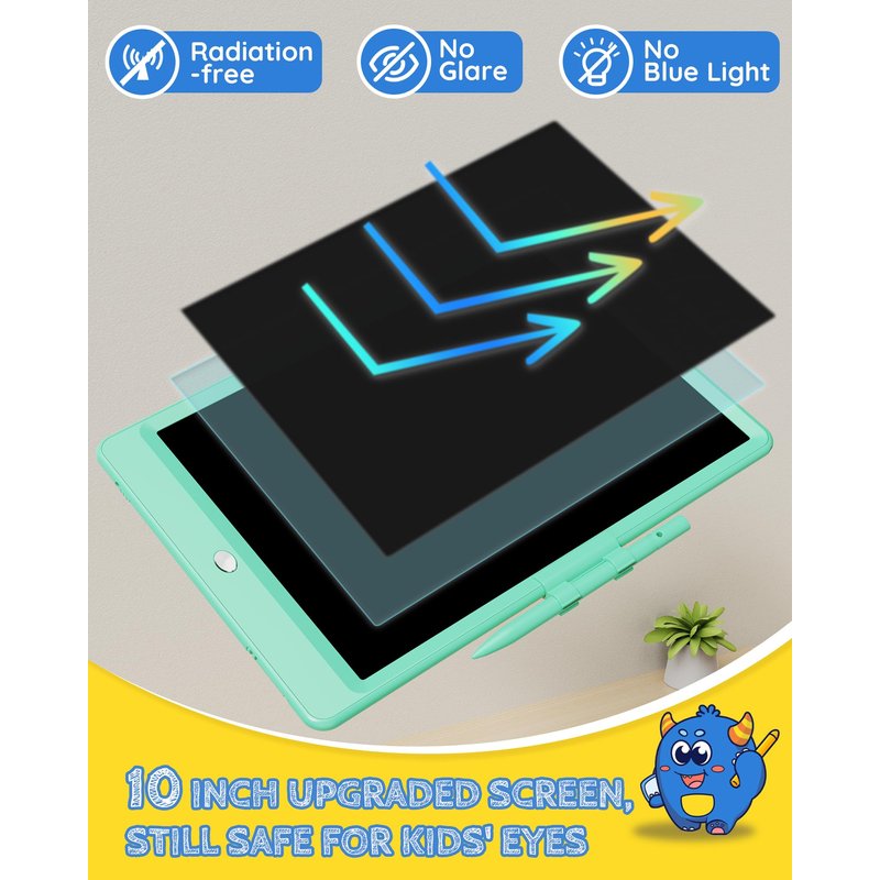 - Free Child’s Imagination: The LCD writing tablet for kids provides 10 inches of space for kid’s writing and drawing, free children's imagination. The eye-protection colorful screen of doodle board provides a better painting experience, avoiding injury to a child’s eyes from long-term use