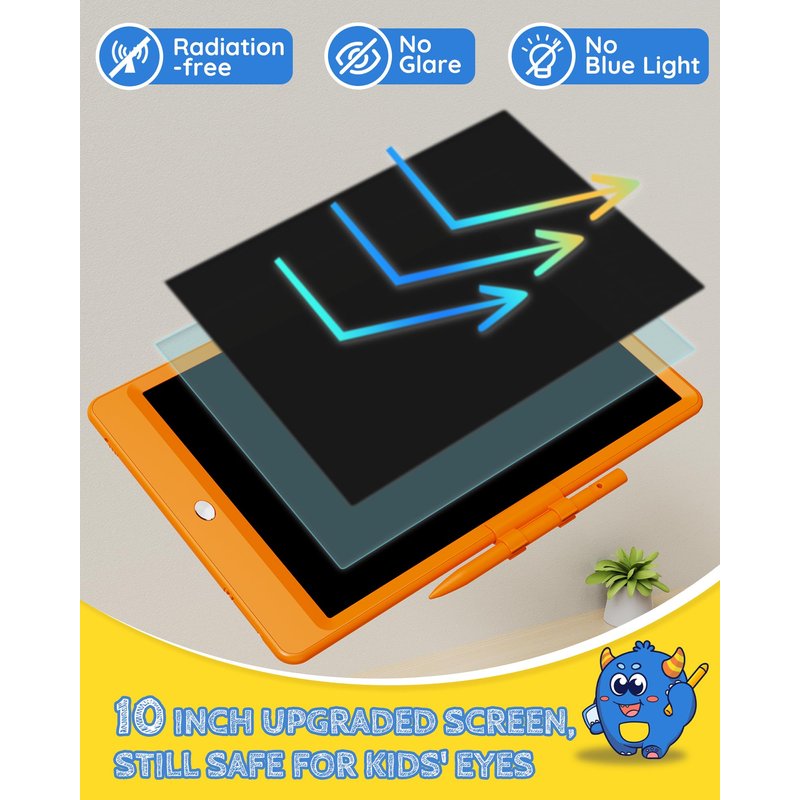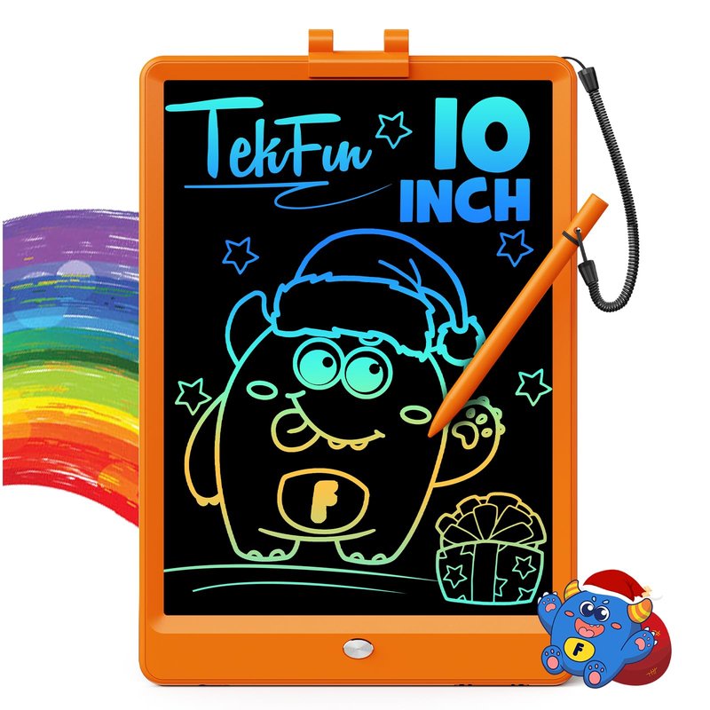 - Free Child’s Imagination: Tekfun LCD writing tablet provides 10 inches of space for kid’s writing and drawing, free children's imagination. The eye-protection colorful screen of doodle board provides a better painting experience, avoiding injury to a child’s eyes from long-term use