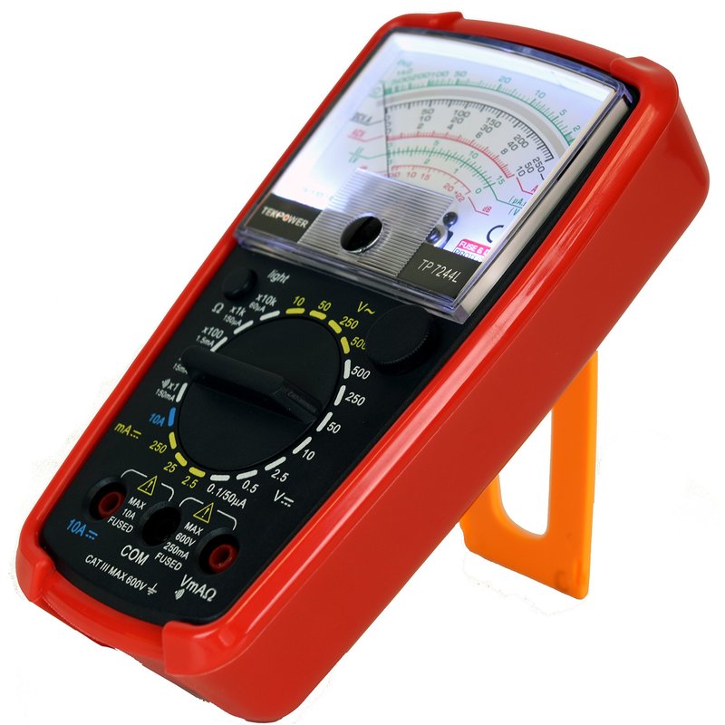The Tekpower 7244L is a 20-Range Analog Multimeter, which you can use to measure AC/DC voltage, DC current, resistance, continuity, decibel values/dB and diode test.