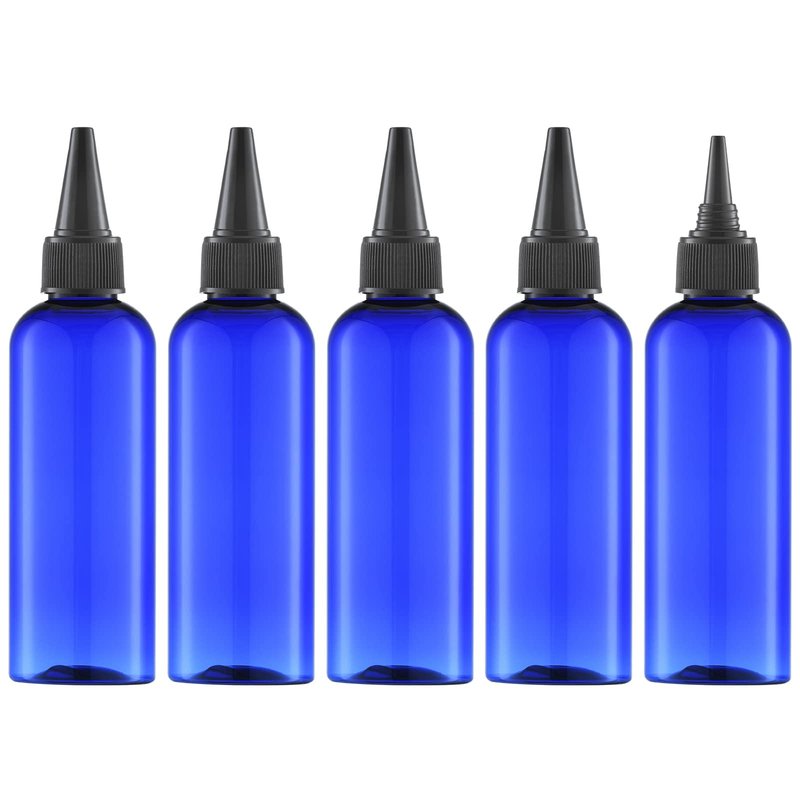 Tekson Hair Color Applicator Bottles, 5 Pack Refillable Squeeze Bottle, Empty Plastic Twist Top Cap Bottles (3.4 OZ, Blue)