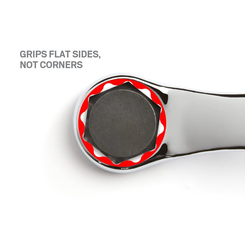 - Box end geometry is designed to grip flat sides of fastener heads, not corners, to prevent round-off