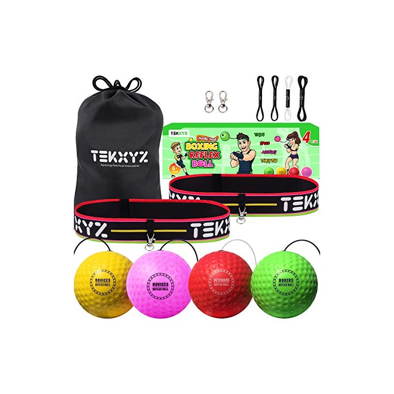 TEKXYZ Boxing Reflex Ball Family Pack, 4 Different Boxing Ball with Headband, Perfect for Reaction, Agility, Punching Speed, Fight Skill and Hand Eye Coordination Training