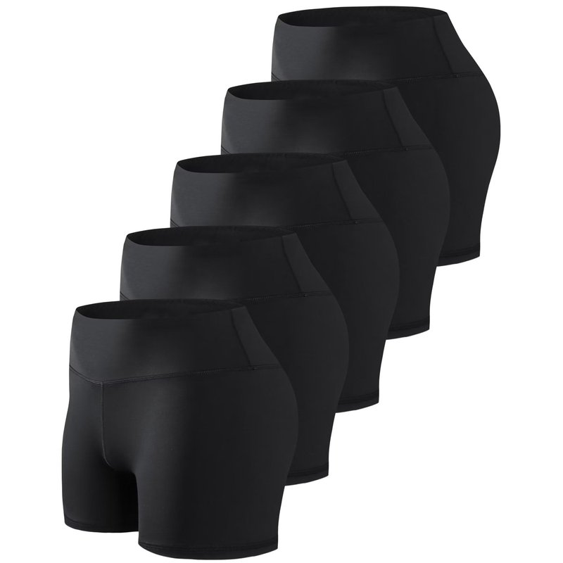TELALEO 5 Pack 5" Womens Volleyball Shorts Spandex Compression Shorts Workout Performance High Waist Yoga Biker Shorts S