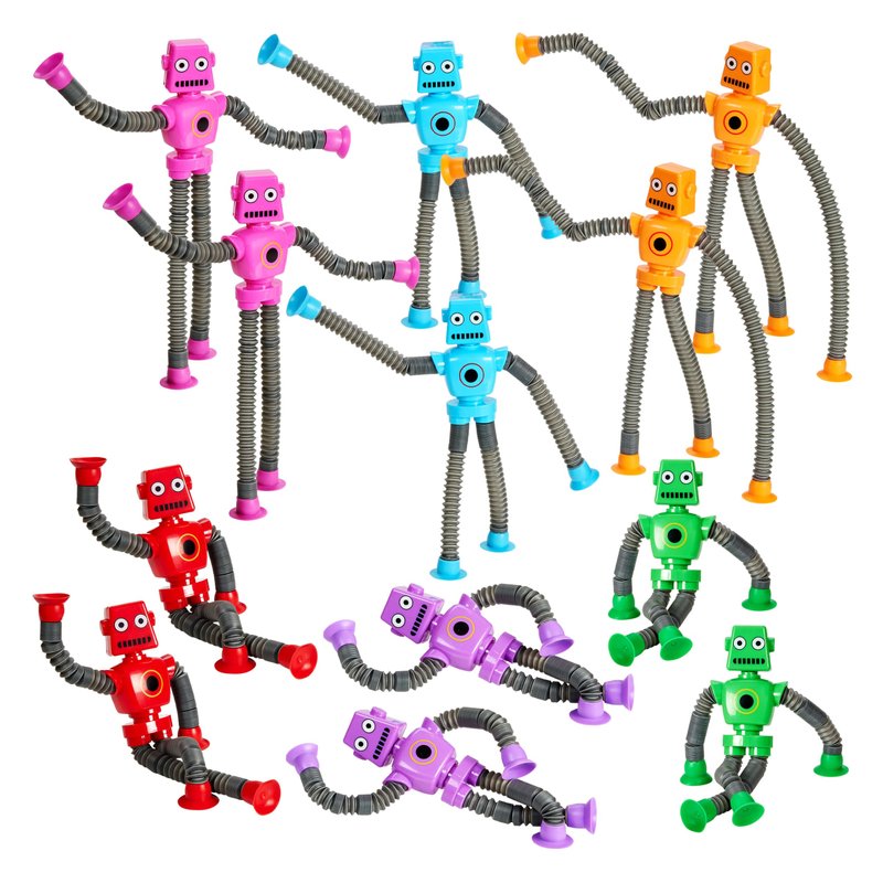 - 💠 Versatile Fun: Its innovative design with a flexible tube and suction cup makes this toddler robot toy a fantastic addition to any collection of fidget toys. Perfect for toddlers, sensory play, travel, and educational purposes!