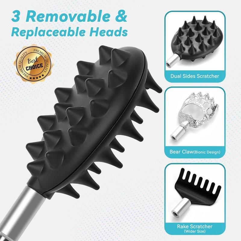 - 【3 Different Scratcher Heads for Customized Experience】The HEYAXA Itching Scratcher Set includes 3 detachable heads: the Dual Sides Scratcher features one side for scratching and the other for massage; the Bear Claw Head provides efficient and thorough scratching; and the Rake Scratcher offers a wider edge for a comprehensive scratching sensation. Enjoy versatile experiences that cater to the needs of every family member!
