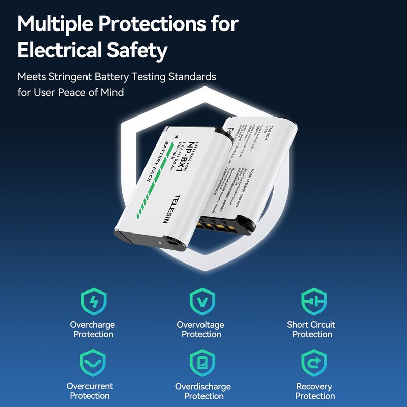 - đ·ăSide Charging Port, User-friendly DesignăUnlike the other NP-BX1 battery charging case in the market put their charging port at the bottom, TELESIN NP-BX1 quick charger storage case built with side charging port for your charge work, which makes it possible store the charger with cable in pocket together, much more convenient for carrying.