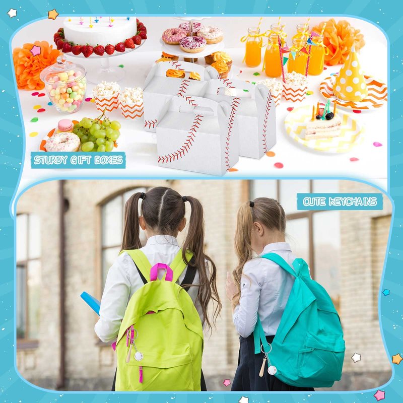 Teling 48 Pcs Baseball Party Favors Include 12 Baseball Treat Boxes 12 Mini Baseball Stress Ball 12 Mini Baseball Keychain with Wooden Bat 12 Baseball Charm Bracelets for School Team Sports Birthday