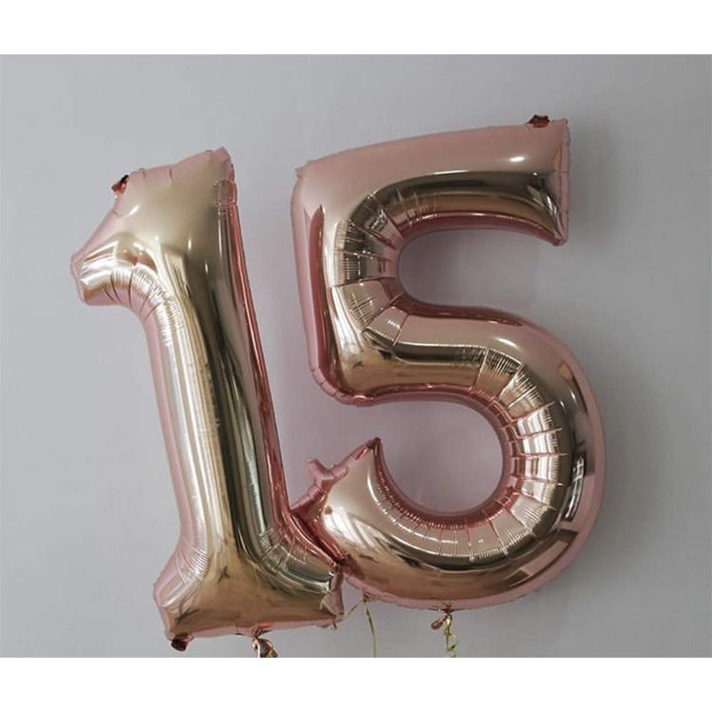 - 15 balloons, Rose Gold number 15 foil mylar balloon
