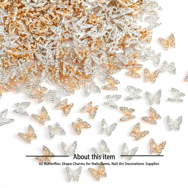 - High Quality Alloy - 3D Butterfly Shape Nail Charms, made of high quality stainless steel alloy, metal base with crystal diamond rhinestones, very sparkling and dazzling.