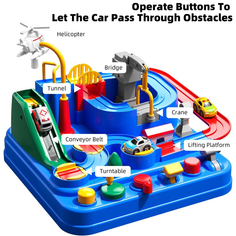 - Practice Intelligence and Imagination: Race track car toy combine bright color with 8 different challenges, which practices boys toys age 4 coordination and operation skills. The 2-in-1 track cooperative game brings more fun than traditional single track