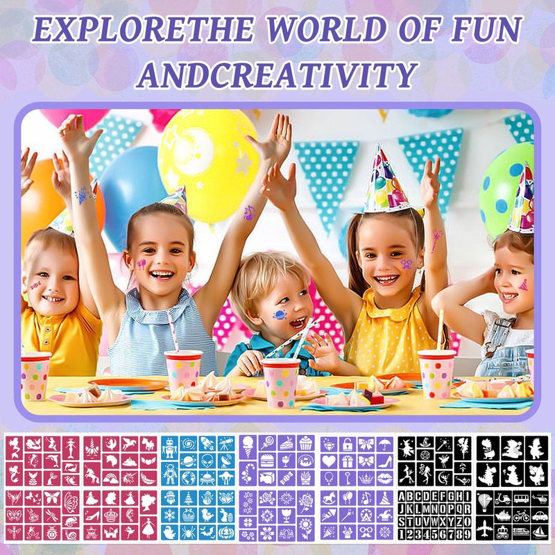 - 🎁🎁★【Perfect Gift for Giving】This glitter tattoo kit contains enough kits, have fun creating unique art and exciting tattoos with your friends and family! Make you unique and sparkling throughout the party. Suitable for those who love shiny things, the cute gift box set design is a perfect gift for girls or boys as a birthday gift, children's day gift, Christmas gift and so on.