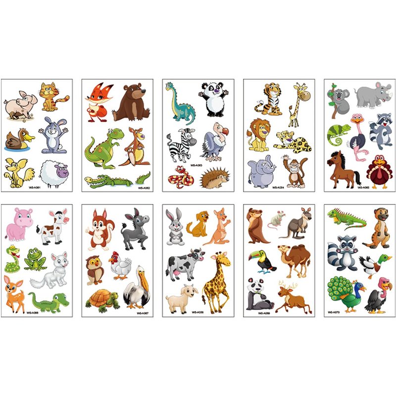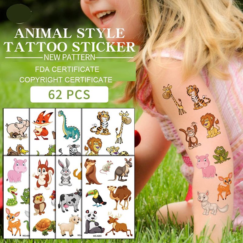 Temporary Tattoo for Kids, 62pcs Fake Tattoos Pattern, Waterproof Body Art Stickers, Cute Tattoo Decorations, Birthday Party Favor Supplies Decor for Boys Girls Children Toddler Teens 10 Sheets Animals