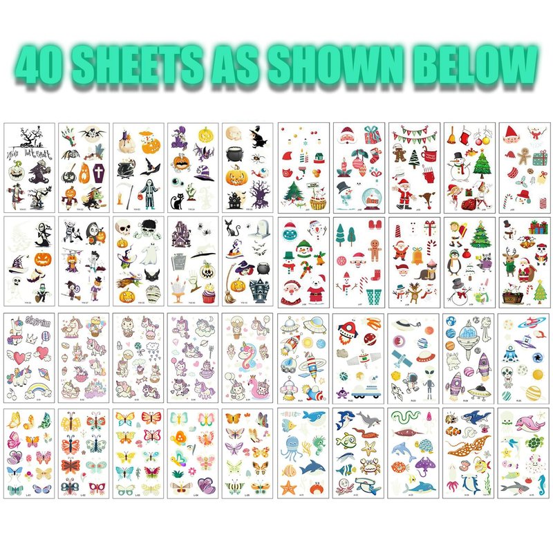 - Value Sticker Set:We include 400+ pieces kids tattoos!These adorable Mixed elements of our fake tattoos include pumpkins, air ship,sharks,Butterfly, and other kid-friendly motifs!A set of mixed style tattoos can meet the whole kids party need!