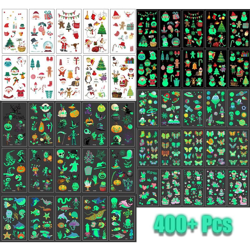 Temporary Tattoos For Kids, 400+ Mixed Styles Kids Tattoos Stickers Set,Mermaid/Dinosaur/Space For Boys And Girls, Glow Party Supplies Goody Bag Stuffers