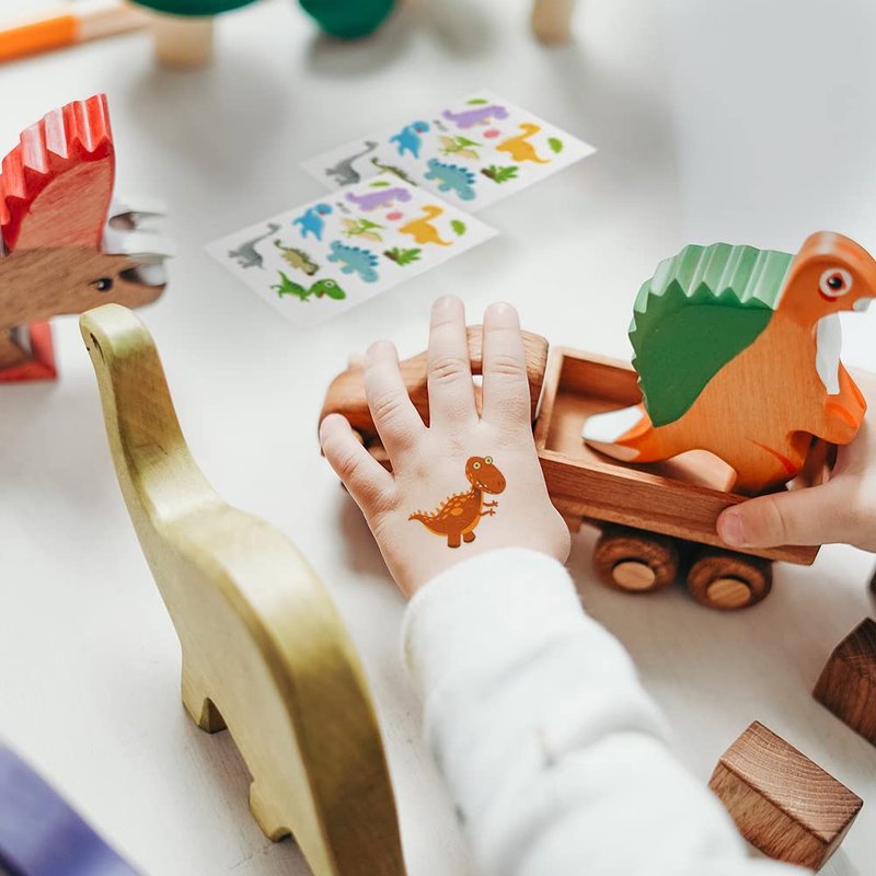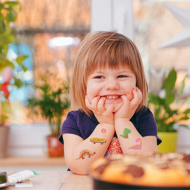 - Material:The dinosaur tattoo sticker is made of high-quality paper and covered with film, which is not easy to fade, durable and waterproof.With these cute dinosaur theme temporary tattoos glowing,will provide big fun for both children and adults alike!