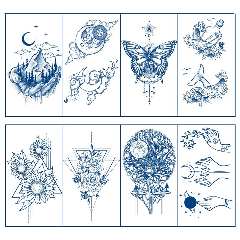 - ★【Package quantity】--8 sheets tattoo stickers for men and women, can be applied to any part of the body to make you look more handsome and unique.