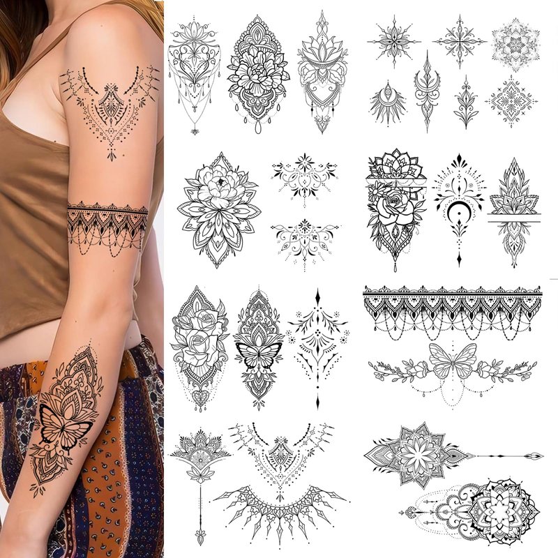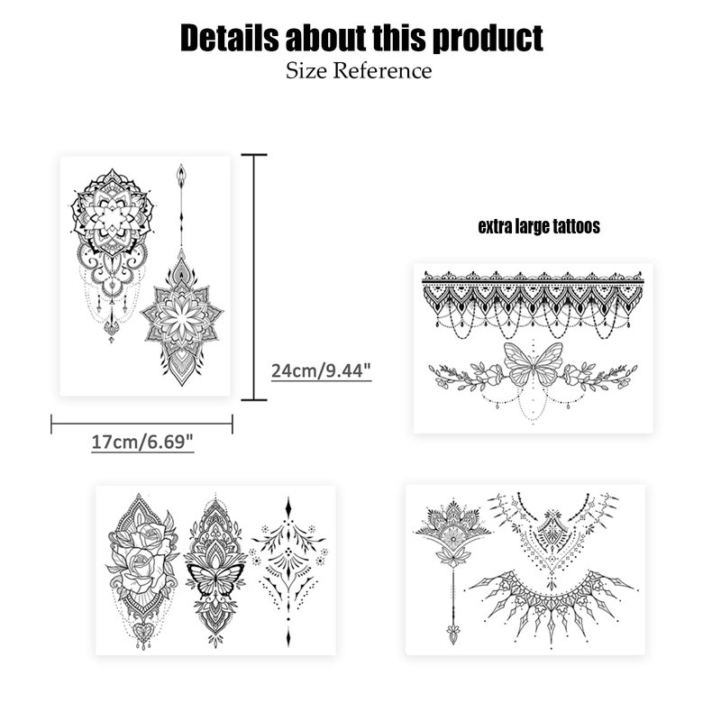 - Large temporary tattoos women, adult temporary tattoos women,These gorgeous temporary tattoos are carefully designed by tattoo artists, featuring butterfly lace floral elements, sexy and gorgeous temporary tattoos, women's temporary tattoos, thigh tattoos, abdominal tattoos, large temporary tattoos, chest temporary tattoos, and butterfly temporary tattoos.