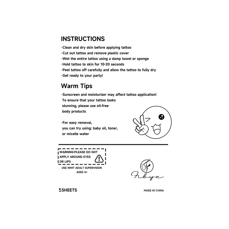 - Easy Application: 1. Pick your favorite design, cut it out, and place it face down on clean + dry skin 2. Grab a damp paper towel and lightly pat the tattoo paper for at least 15 seconds. 3. Remove the tattoo paper and allow the tattoo to dry 4. Enjoy your super cute mermaid tattoos! PS- we included instructions on the back of each sheet!