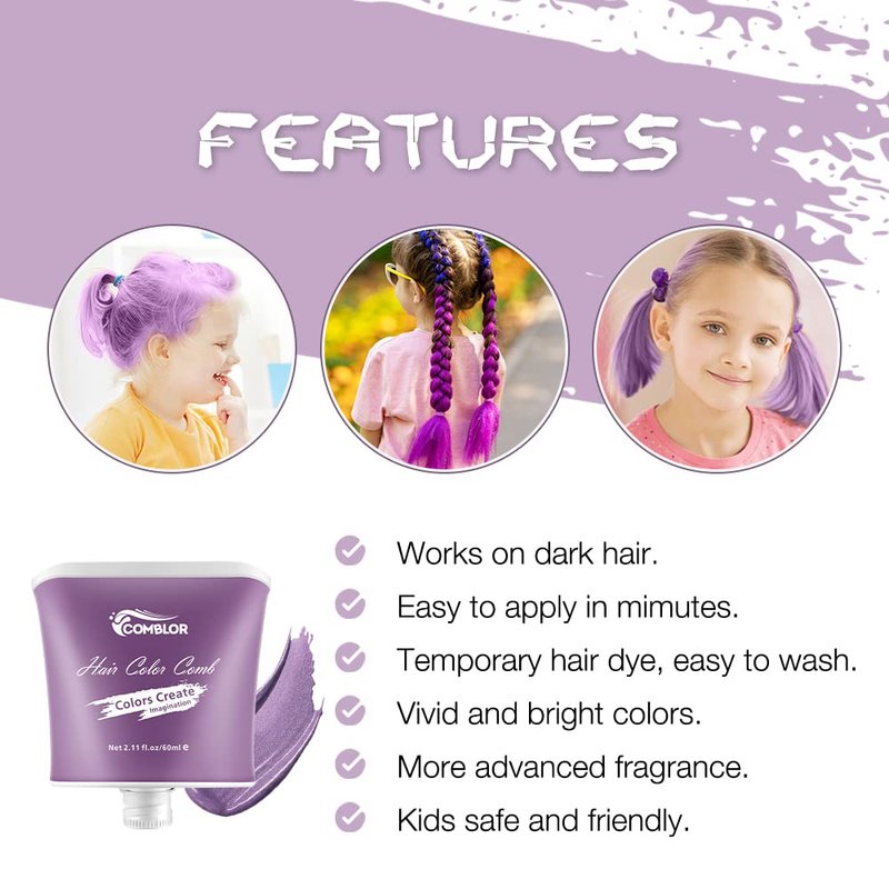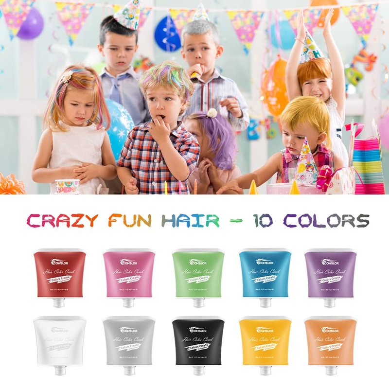 - 💗【 Ideal Toys Gifts】Comblor temporary hair color for kids is a good hair stuff for girls boys, kids, and teens aged 3 and plus who like designing their own hair, helping them express their personality and creativity. You also can use it on your lovely dog's hair. Perfect for Daily Hair Beauty, Festivals, Parties, Events, Clubbing, Raves,Easter, Halloween, Christmas, Fancy Dress, Cosplay, Children's Day, Crazy Hair Day etc.