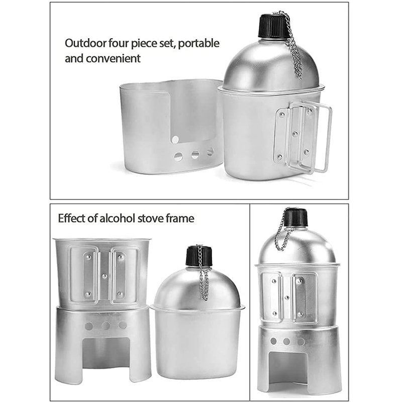Tempsnow Aluminum Water Canteen Cup Stove Pouch Set Portable Military Canteen with Cup for Outdoor Camping Survival Nature Experience Hiking Backpacking