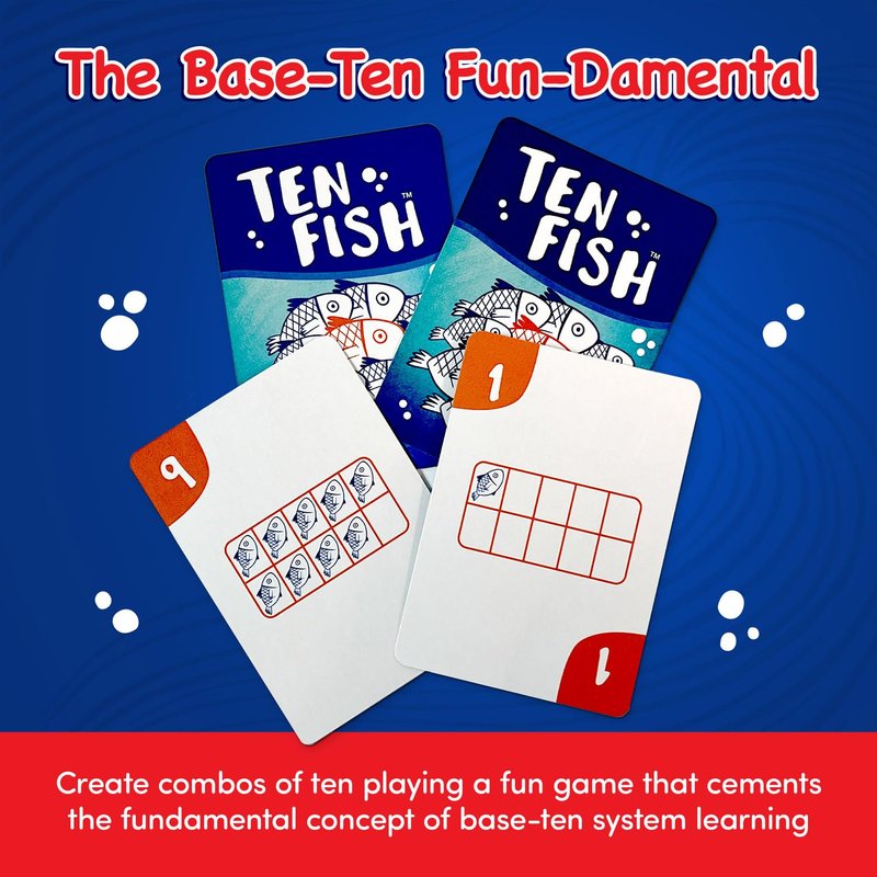 - Nostalgic Fun Meets Numerical Novelty: Ten Fish is a Montessori math card game that leaves kids asking for more; But it's not just about having fun while mastering numbers - it's about the little victories, the triumphant high-fives, and the confident smiles that light up their faces with each challenge they conquer
