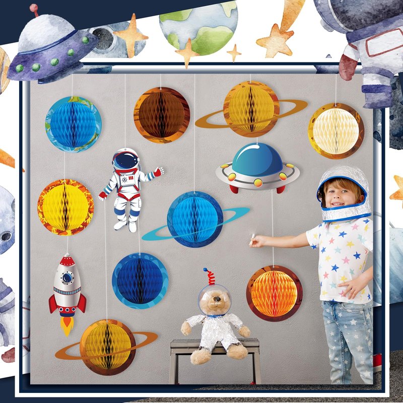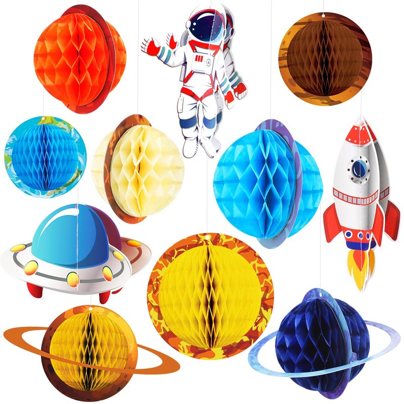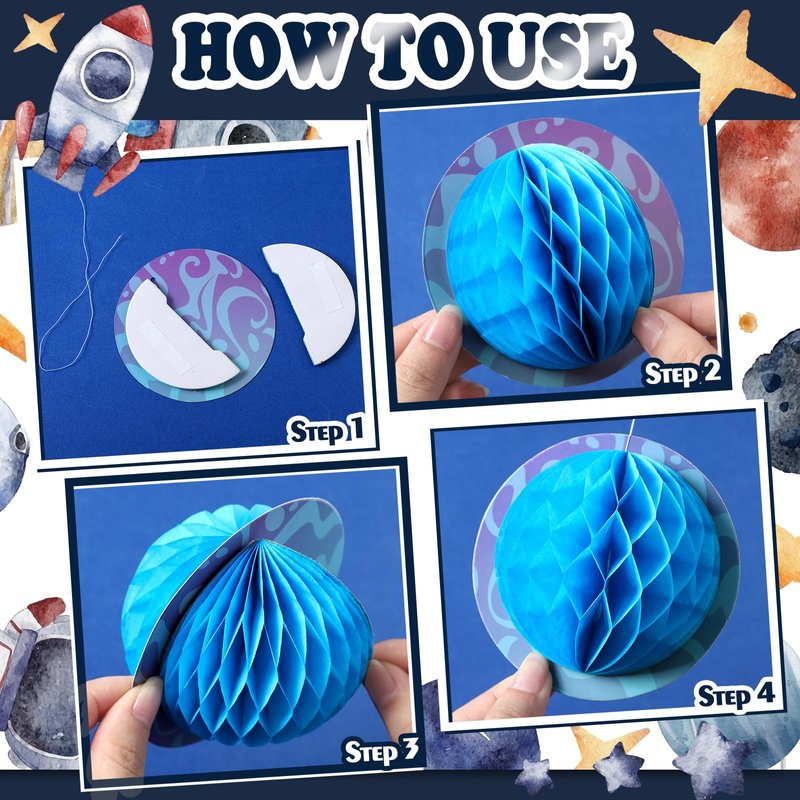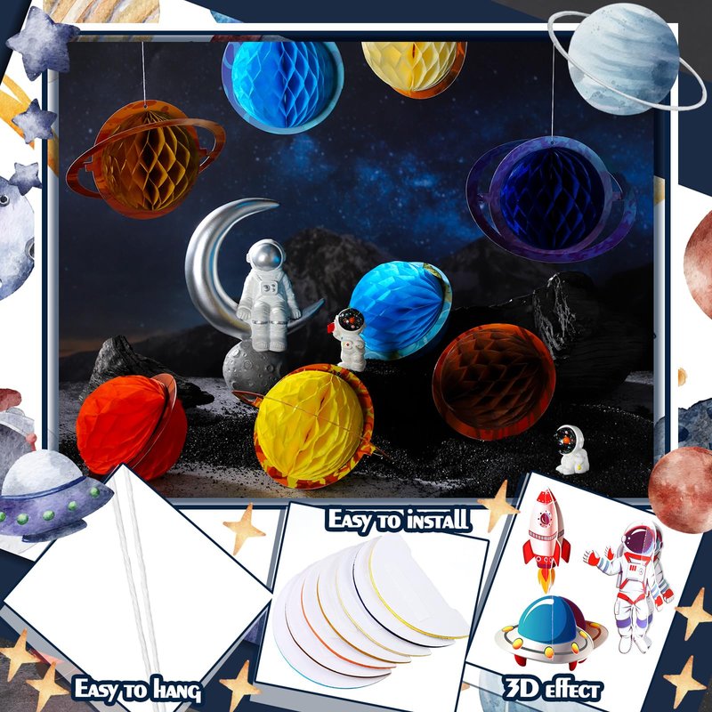 - Easy to Set up: every galaxy planet honeycomb paper ornament is equipped with an attached string which allows you to set them up with absolute ease; Decorating for your solar system themed party has never been easier