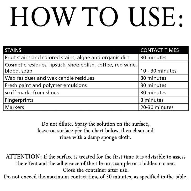 This is the Bravo Quartz Stain Remover From Tenax - 750 mL 2-Pack and this is exactly what you need. Tenax Bravo! Quartz Stain Remover safely removes and cleans difficult stains from quartz. Treat these everyday problems effortlessly as you get rid of organic Stains; food stains; wine; coffee blood; cosmetic residue; shoe polish; fingerprints and even general wax residues and candle wax residues. Bravo Quartz Stain Fighter can be used indoors and outdoors. Do not Dilute. It is ready-to-go right in the bottle. This cleaner is recommended by stone restoration professionals since it is completely safe for stone and will not cause etching or change the finish of the stone. It is simply a deep cleaning that is excellent for regular use with your stone!