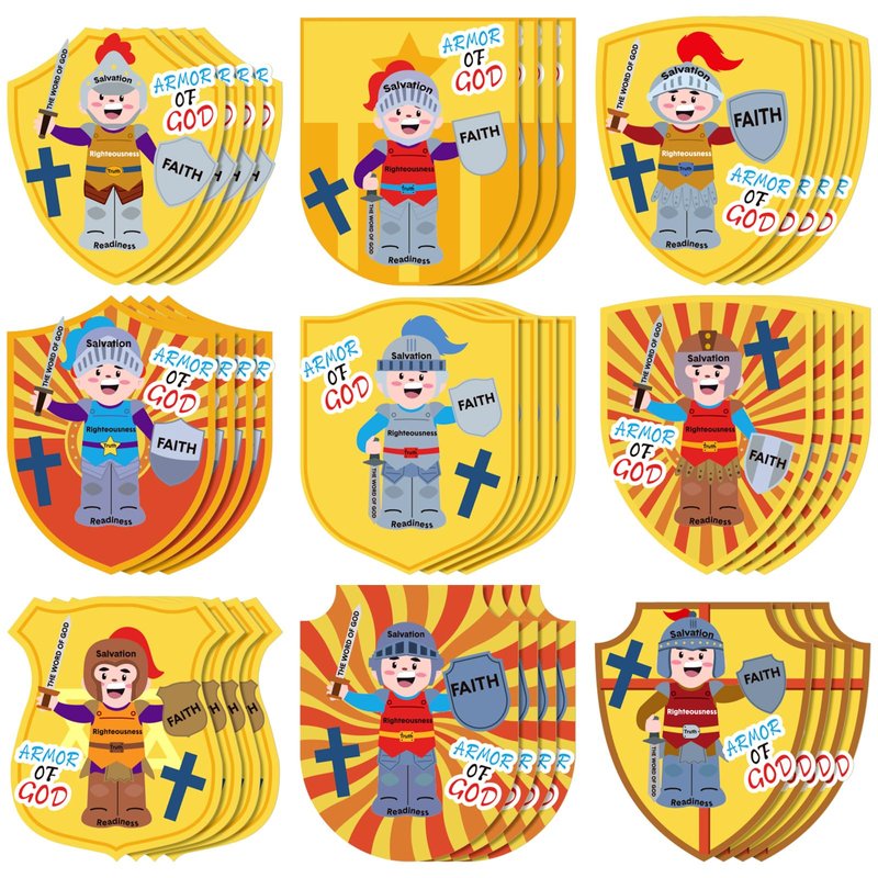 - Armor of God Craft Kit: this set of Armor of God craft contains a total of 36 armor cards in 9 styles, and multiple sticker sheets that include over 396 pieces self adhesive stickers to help finish the armor cards, kids can create their own armor with them, each measures about 6.4 x 4.8 inches/ 16x 12 cm, a sufficient quantity and divers styles to satisfy your DIY crafting needs