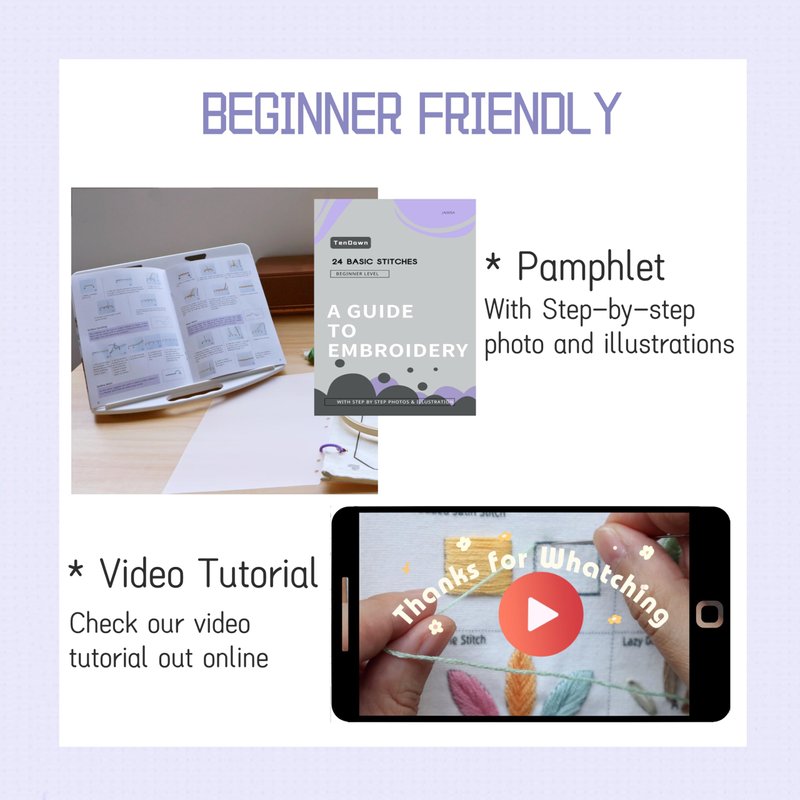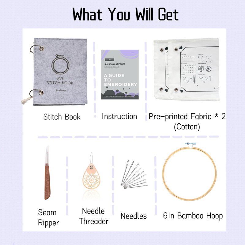 TenDawn Embroidery Kit for Beginner Adults, 24 Basic Stitches, Organized Function, All in One