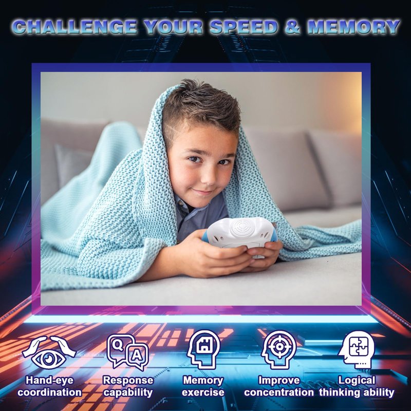- 7 Game Modes Handheld Game : - New upgrade adds directional joystick with 7 game modes (Whack-a-mole Game, Tetris Game, Hunt Game, Match-up Game, Memory Solitaire Game, Rating Game, Minesweeper Game), more interesting and diverse gameplay. Let your kids think positively and react quickly in challenging levels and exercise concentration, memory, reaction, hand-eye coordination and hands-on ability. *For more detailed gameplay, please refer to the provided manual.