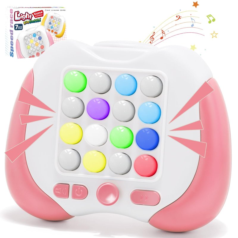 Tendccy Quick Push Handheld Game for Kids 3-12, 7 Game Mode Flashing Fast Press Push Puzzle Games Sensory Fidget Toys, Christmas Birthday Gifts Travel Toys for Boys Girls Teens Adults - Pink