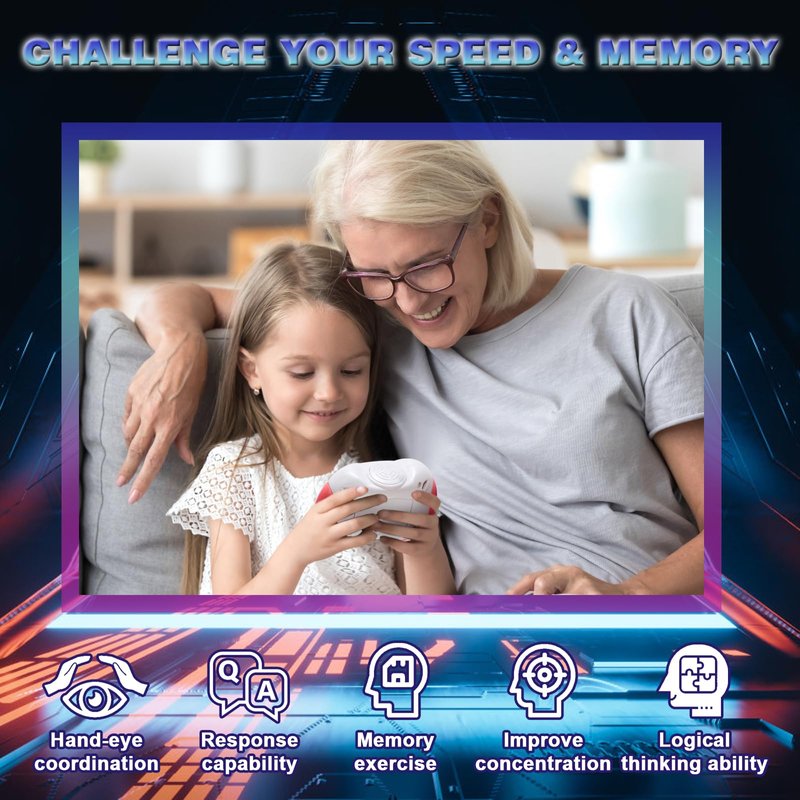 - 7 Game Modes Handheld Game : - New upgrade adds directional joystick with 7 game modes (Whack-a-mole Game, Tetris Game, Hunt Game, Match-up Game, Memory Solitaire Game, Rating Game, Minesweeper Game), more interesting and diverse gameplay. Let your kids think positively and react quickly in challenging levels and exercise concentration, memory, reaction, hand-eye coordination and hands-on ability. *For more detailed gameplay, please refer to the provided manual.