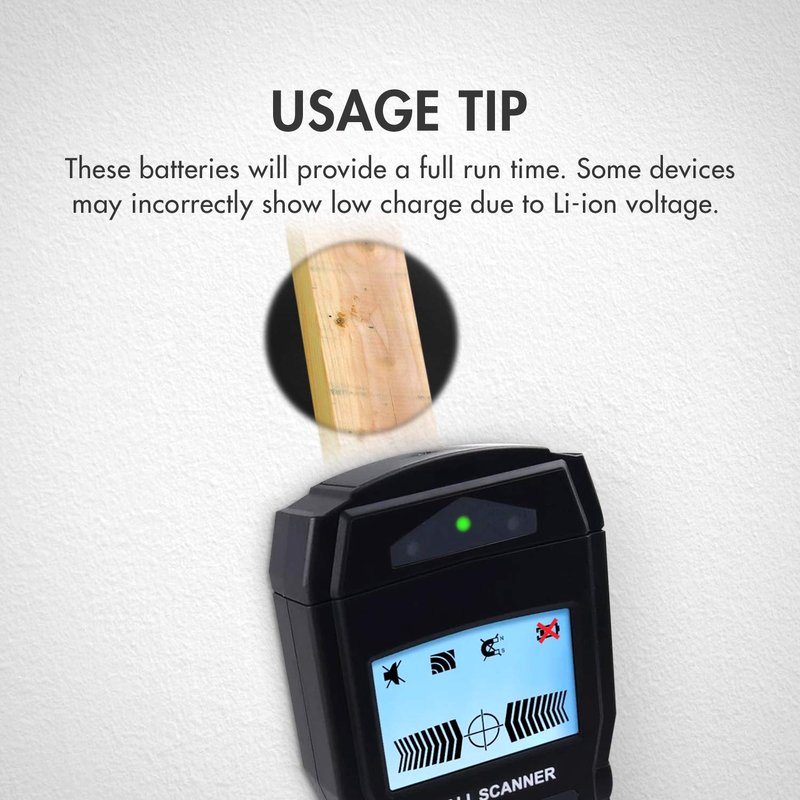 - Standard size 9V batteries - Direct replacement for any 9V Alkaline or 9V NiMH battery electronics. *Li-ion lower voltage may trigger false positive for low power, this is normal and the battery will still provide the full run time.
