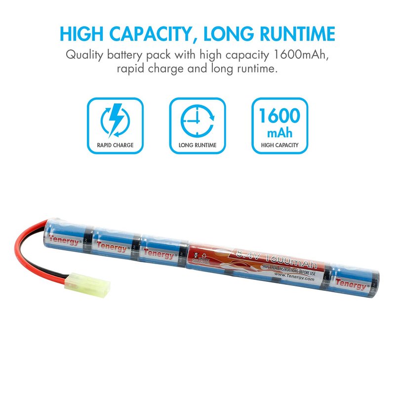 - The Tenergy 8.4V AEG battery features rapid charge up, with high capacity rating of 1600mAh.