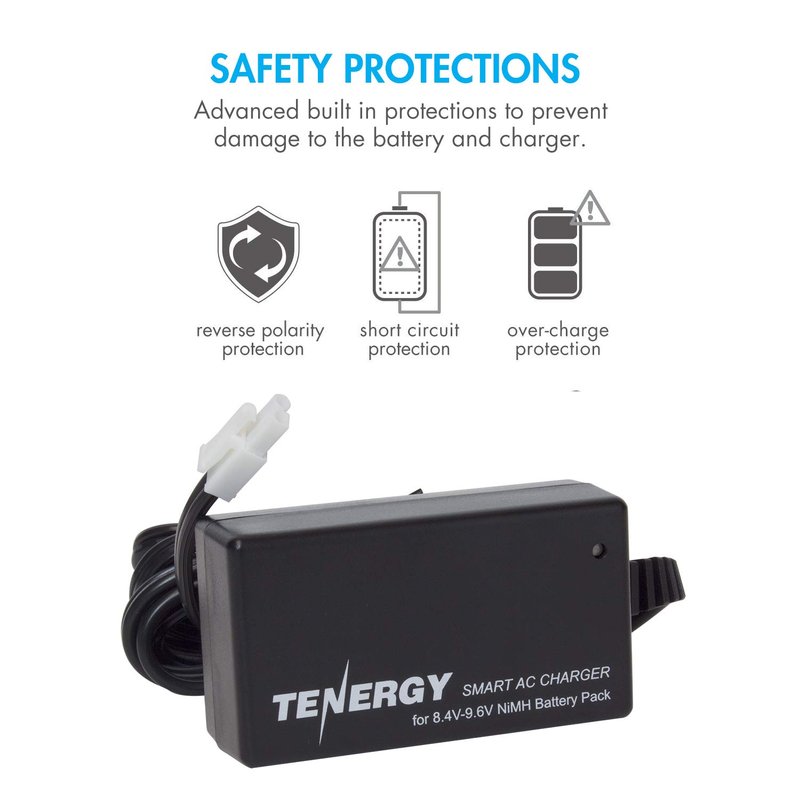 - The included Tenergy intelligent battery charger is compatible with any 8.4V or 9.6V NiMH battery packs in airsoft, RC cars/airplanes that use a standard or mini Tamiya connector.